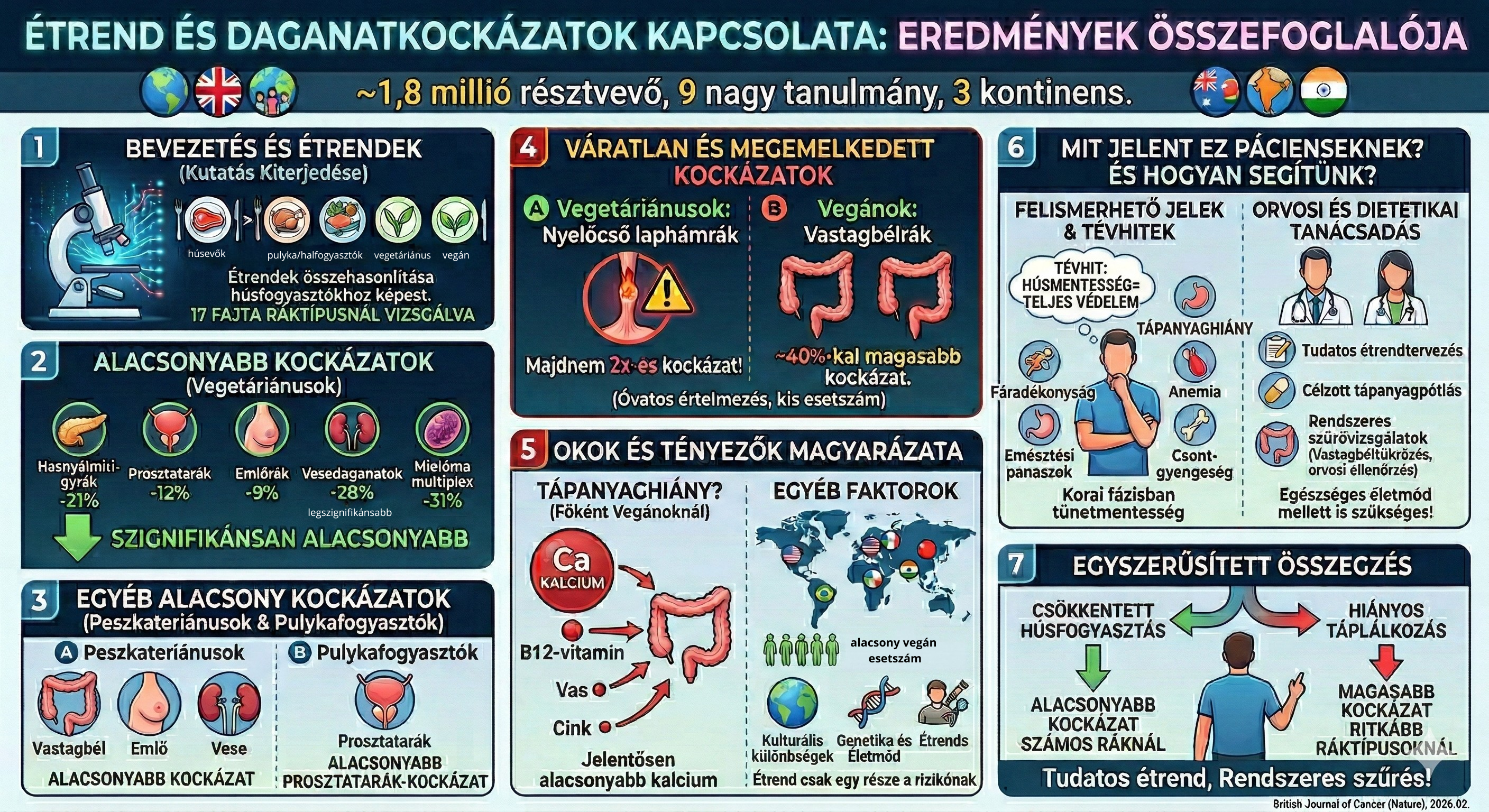 Forrás: Dunneram, Y., Lee, J.Y., Watling, C.Z. et al. Vegetarian diets and cancer risk: pooled analysis of 1.8 million women and men in nine prospective studies on three continents. Br J Cancer (2026). https://doi.org/10.1038/s41416-025-03327-4